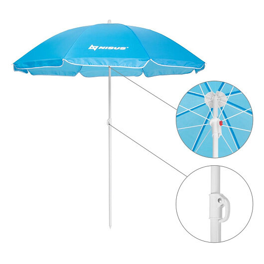 Зонт пляжный N-180 NISUS с диаметром купола 1,8 м - незаменимое дополнение для отдыха на пляже, на загородном участке или пикнике.