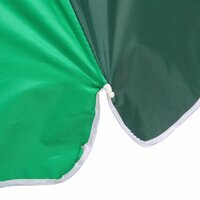 Зонт изготовлен из высококачественного полиэстера, который обладает водоотталкивающими свойствами. Центральная стойка выполнена из металла, что обеспечивает надежность конструкции. Края зонта отделаны белой окантовкой, что придает ему стильный вид. Размеры зонта делают его идеальным для использования как на пляже, так и в саду.