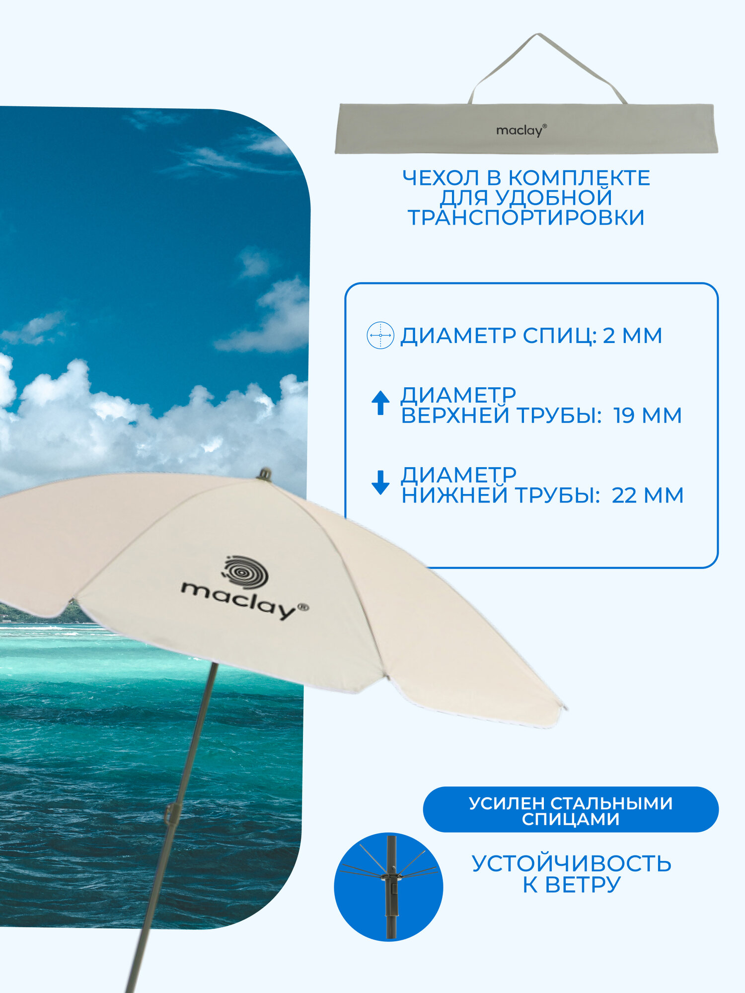Зонт пляжный Maclay УФ защитой d=150 cм, h=170 см: сравнение цен, характеристики, фото, актуальное наличие и цены.