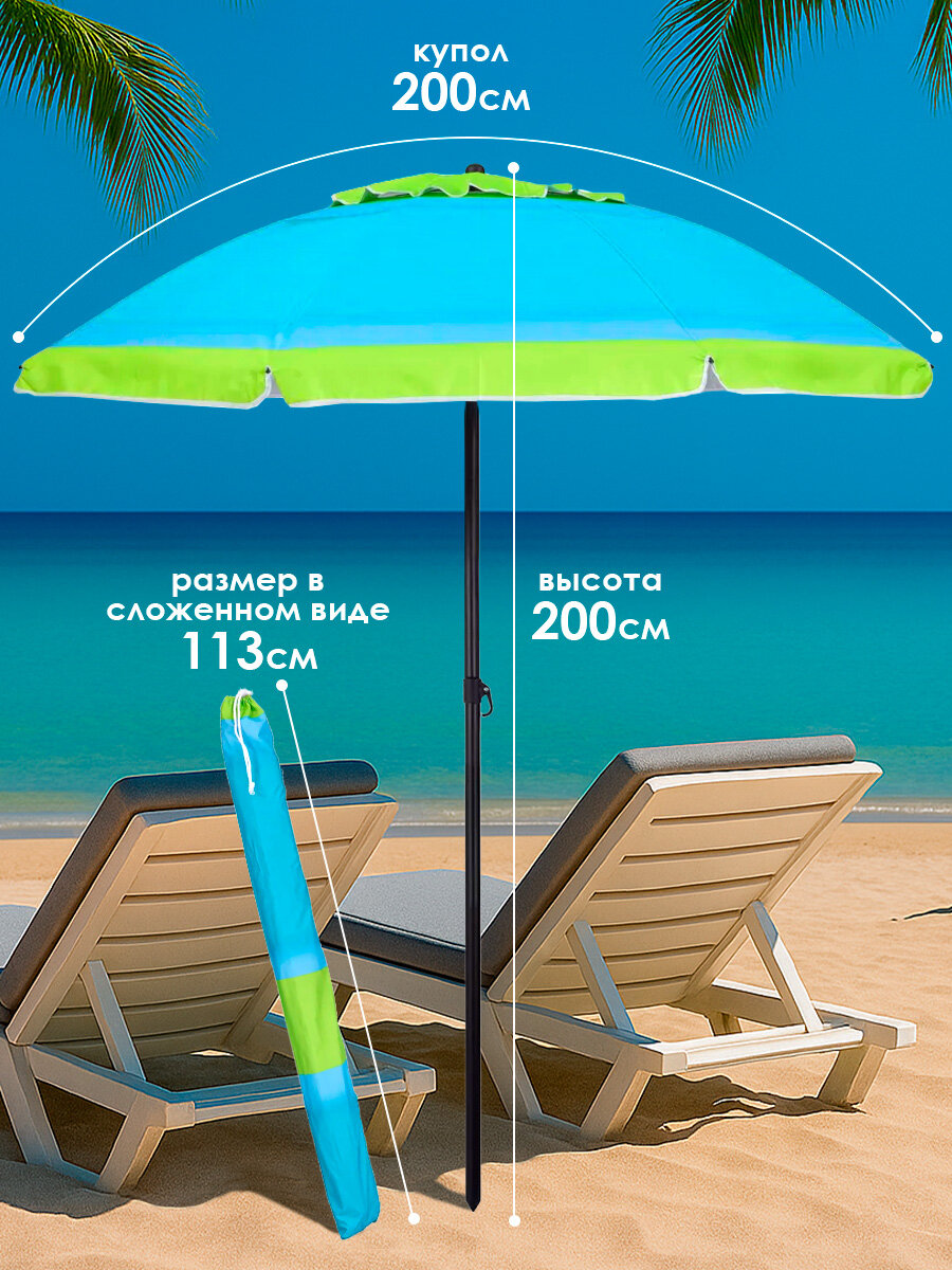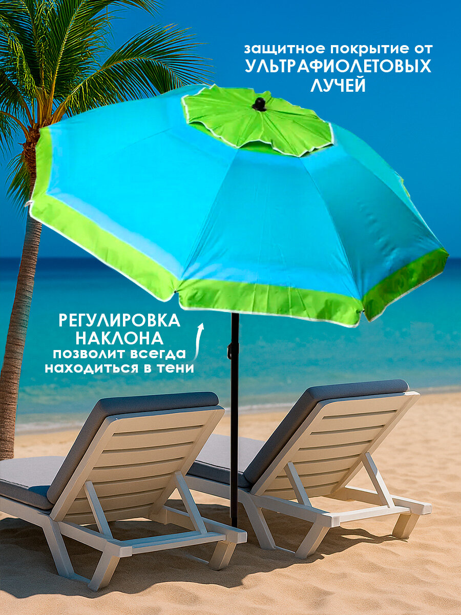 Зонт пляжный от солнца садовый для отдыха с клапаном, с наклоном 2 м в чехле, (голубой/салатовый) 200-8G12: сравнение цен, характеристики, фото, актуальное наличие и цены.