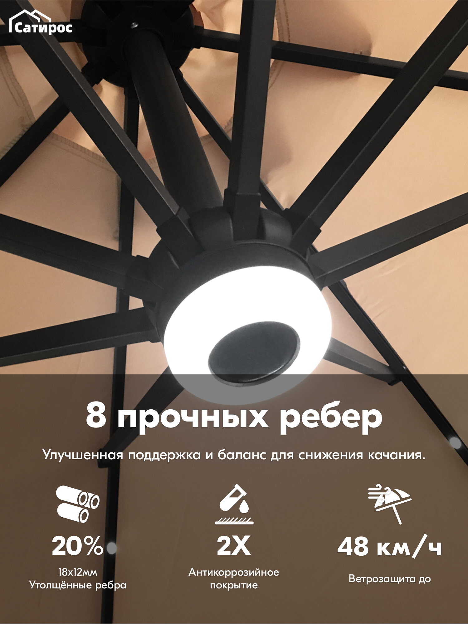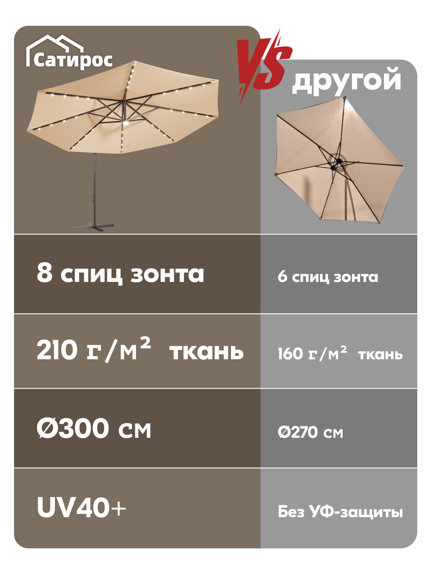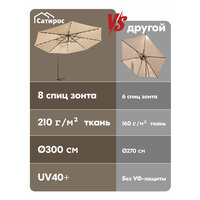 Зонт садовый большой Ø300 см, с LED-подсветкой, UV40+, ткань 210 г/м², хаки: сравнение цен, характеристики, фото, актуальное наличие и цены.
