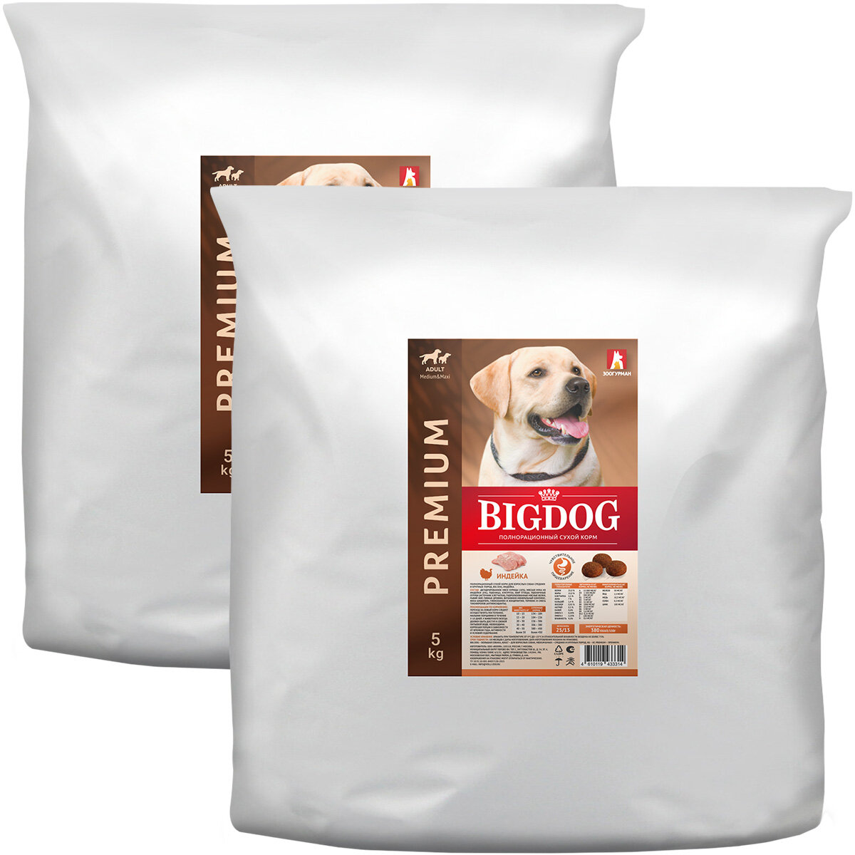Зоогурман BIG DOG для взрослых собак средних и крупных пород с индейкой 5 + 5 кг: сравнение цен, характеристики, фото, актуальное наличие и цены.