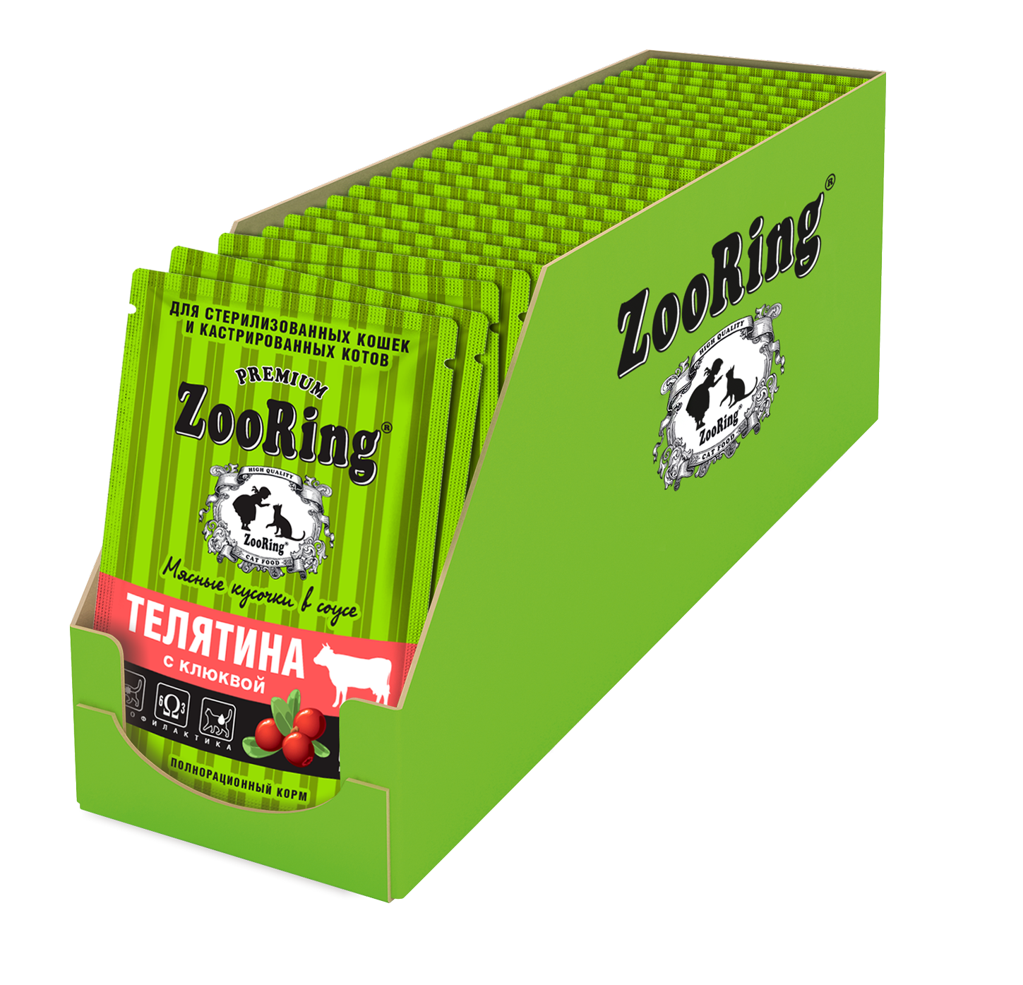 Купить Zooring Телятина с клюквой для кастрированных котов и стерилизованных кошек сочные кусочки в соусе, паучи, 26 шт х 85 гр с доставкой по всей России.