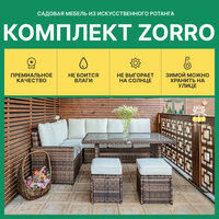 Выполненный в мягком коричневом оттенке комплект уличной мебели ZORRO – это все, что необходимо для полноценного досуга на территории приусадебного участка в теплое время года. Он отлично подойдет как любителям тихих семейных трапез, так и тем, кто предпочитает веселое времяпровождение в кругу близких людей. Габариты набора обеспечивают возможность его установки даже не средней по площади террасе.