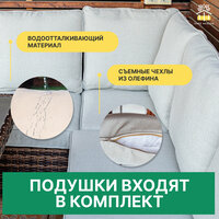 Использование прочного металлического каркаса в совокупности с декоративной отделкой из техноротанга обеспечивает эту уличную мебель рядом важных эксплуатационных преимуществ. Среди них: - способность выдерживать высокие весовые нагрузки без риска деформации; - устойчивость к воздействию механического толка; - незначительный вес для легкой переноски; - чехлы для подушек из водоотталкивающей ткани.