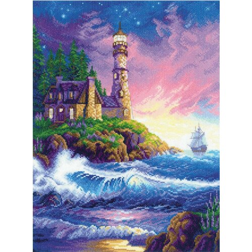 Сюжет вышивки включает в себя море, волну, скалы, маяк, корабль и звезды. Благодаря 27 цветам ниток, ваша работа будет яркой и насыщенной.
