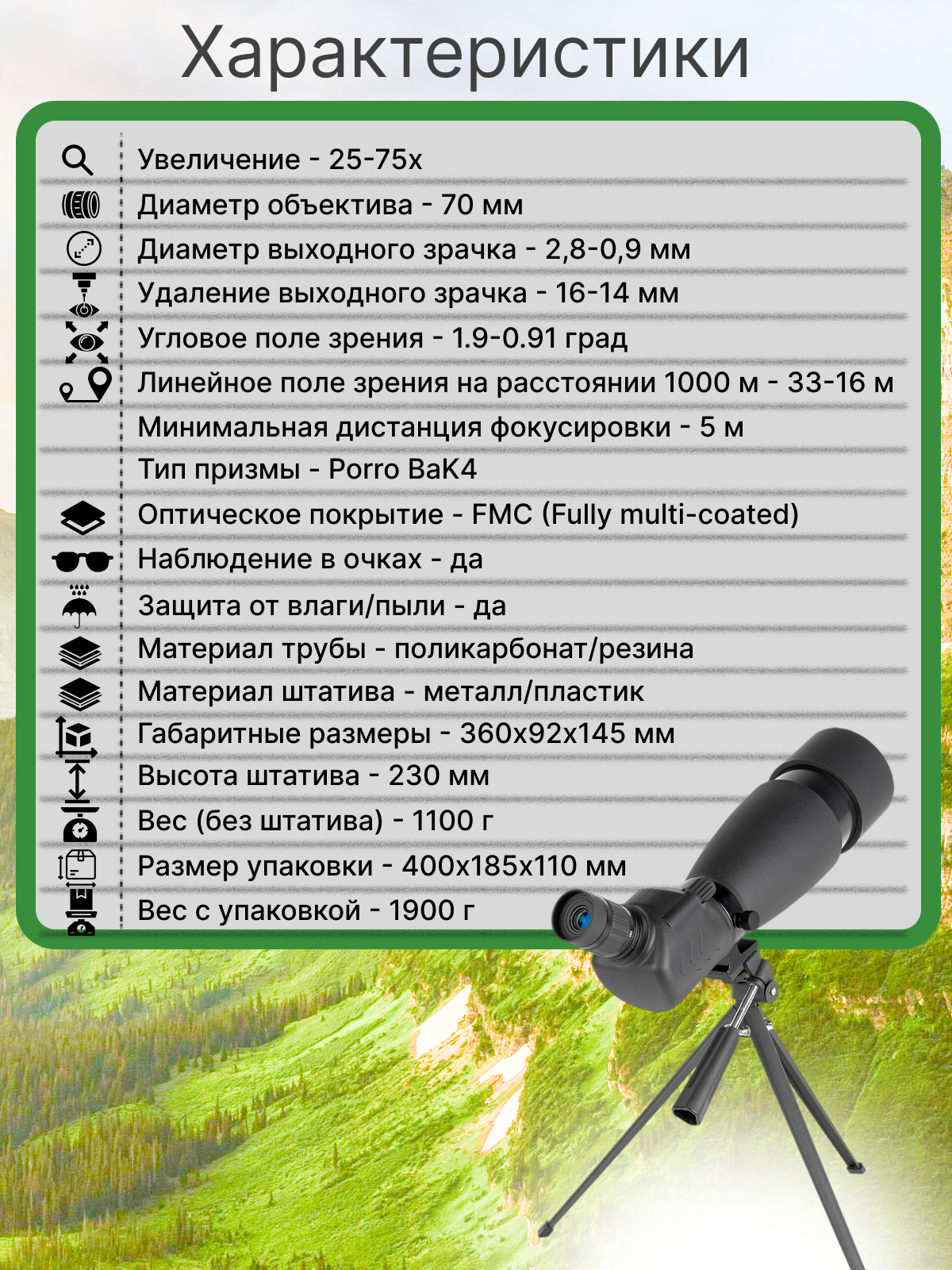 Купить Зрительная труба для охоты и спорта 25-75×70 с сумкой и штативом с доставкой по всей России. Зрительная труба для охоты и спорта 25-75×70 с сумкой и штативом: сравнение цен, характеристики, фото, актуальное наличие и цены.