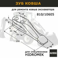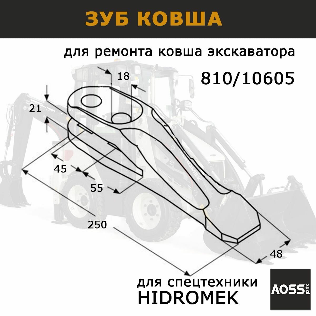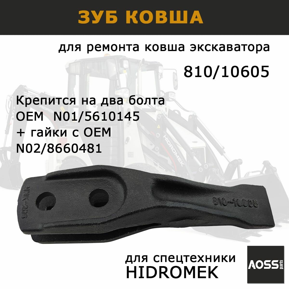 Зуб ковша экскаватора 810/10605 HIDROMEK, запчасти AOSS parts для спецтехники Гидромек: сравнение цен, характеристики, фото, актуальное наличие и цены.