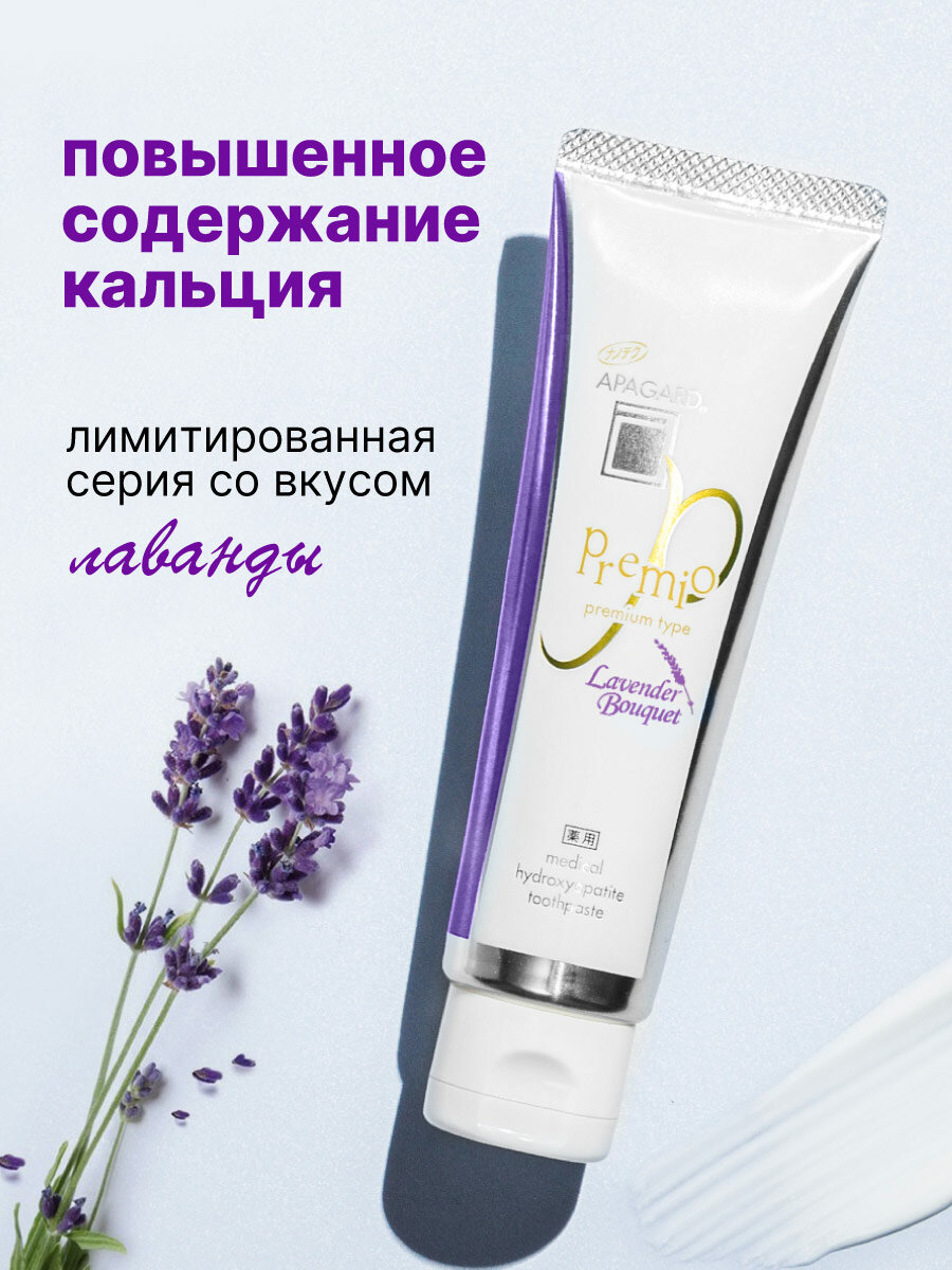 • Зубная паста Apagard Premio Lavender Активно борется с кариесом на ранних стадиях возникновения