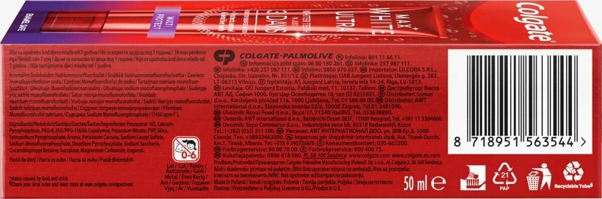 Зубная паста Colgate Max White Ultra Multi Protect, 50 мл (Из Финляндии): сравнение цен, характеристики, фото, актуальное наличие и цены.