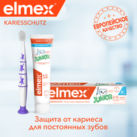 Зубная паста Elmex Junior специально предназначена для ежедневной гигиены полости рта детей в возрасте от 6 лет до 12 лет с целью обеспечения длительной защиты от кариеса, снижения деминерализации эмали и ее укрепления.
