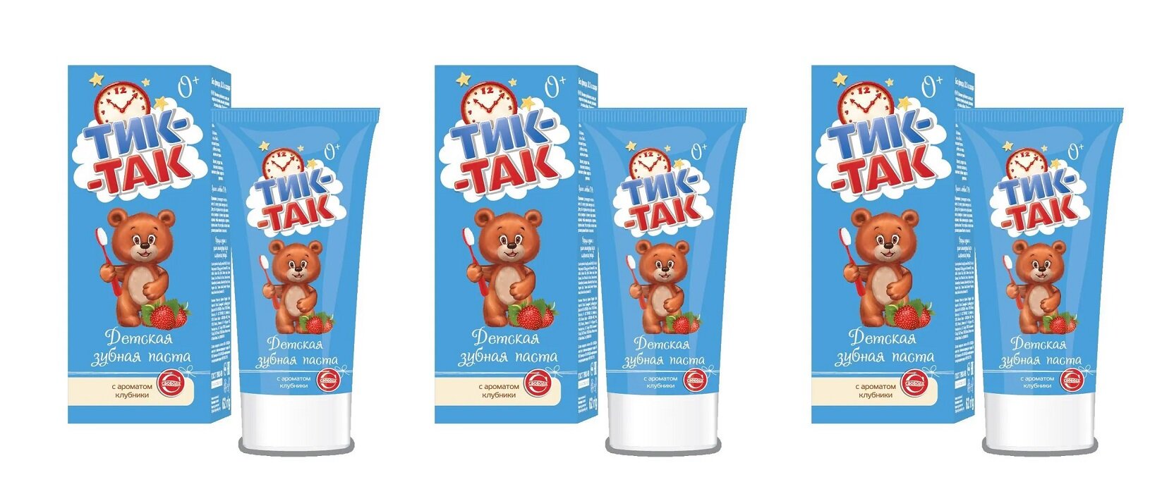 Зубная паста детская Тик-Так с ароматом клубники 0+, 62 г, 3 шт.: сравнение цен, характеристики, фото, актуальное наличие и цены.