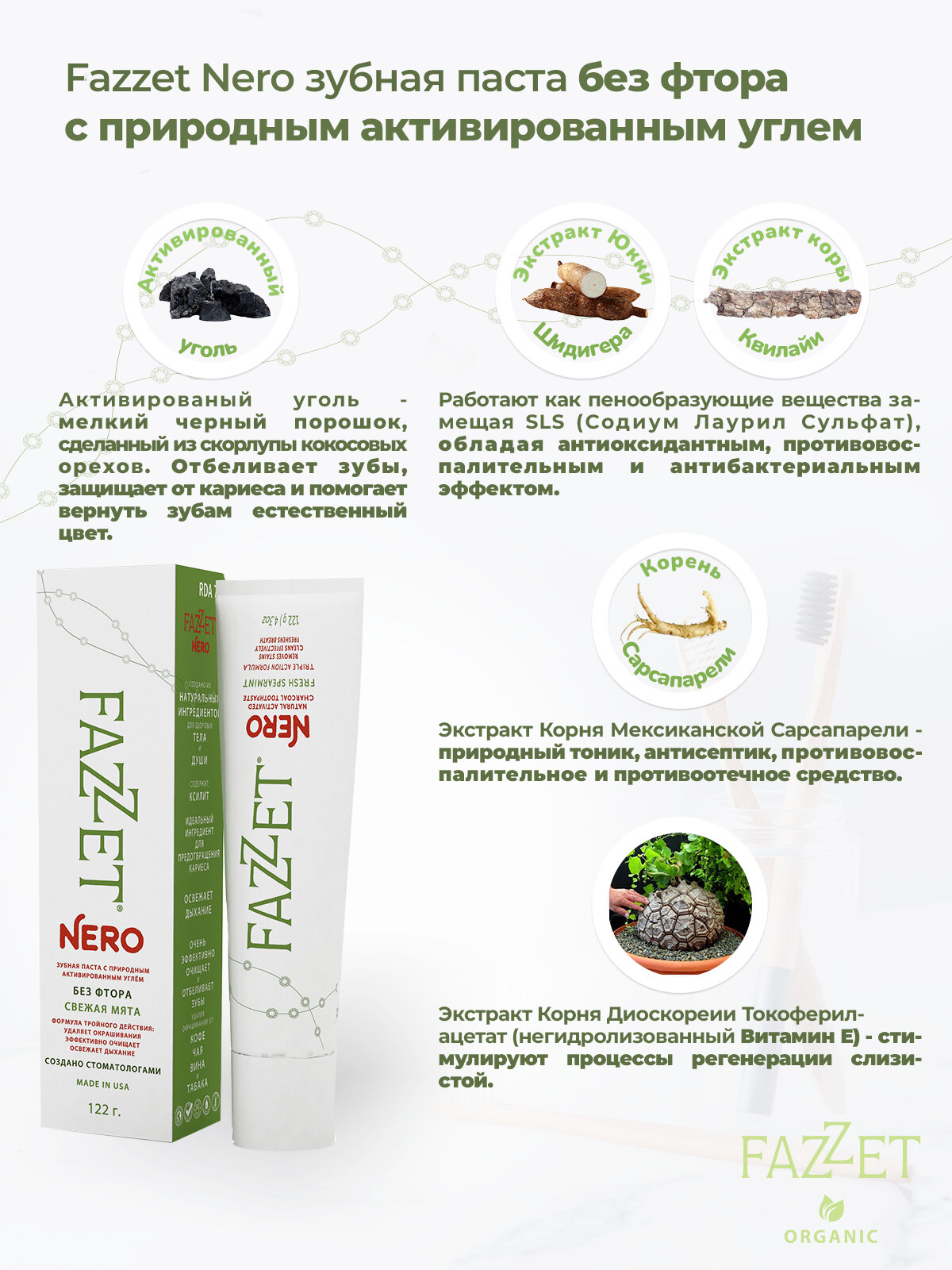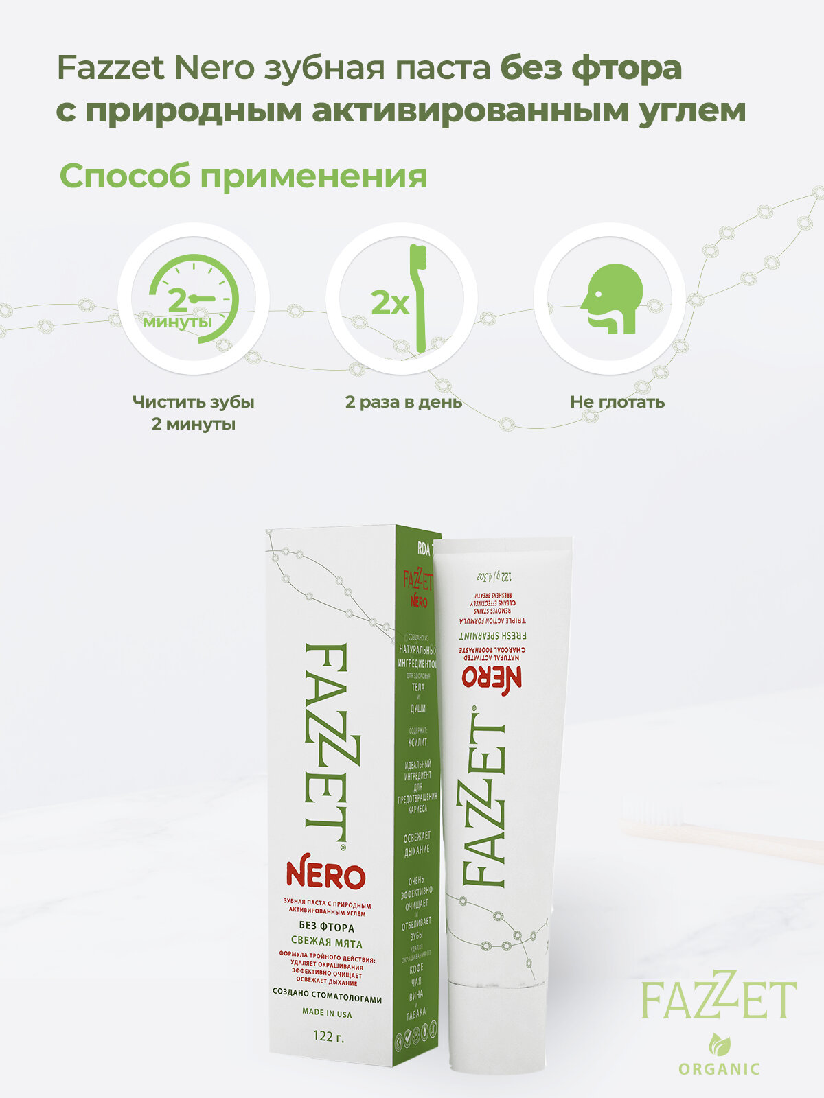 Купить Зубная паста Fazzet Nero organic без фтора, 122 г + подарок рельефная зубная щётка с доставкой по всей России. Зубная паста Fazzet Nero organic без фтора, 122 г + подарок рельефная зубная щётка: сравнение цен, характеристики, фото, актуальное наличие и цены.