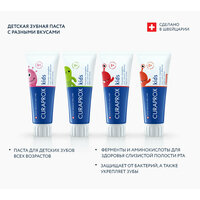 Детская зубная паста Kids со вкусом клубники, предназначена для детей с 2 лет. 950 ppm. Зубная паста поддерживает защитные функции слюны, естественно и нежно очищает детскую эмаль зубов, снижает риск появления налета на зубах, надолго обеспечивает свежесть дыхания, уничтожает болезнетворные бактерии, обладает противокариозным действием, предотвращает заболевания слизистой полости рта и устраняет сухость. Не содержит глютен.