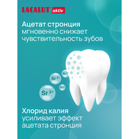 Зубная паста LACALUT Aktiv защита десен и снижение чувствительности 75 мл. х 2 шт. Комплексное действие зубной пасты Lacalut aktiv защита десен и снижение чувствительности направлено на укрепление десен и уменьшение гиперестезии. Антисептик снижает количество бактерий в полости рта и предотвращает воспаление, лактат алюминия уплотняет рыхлые десны и уменьшает их кровоточивость. Комплекс неорганических солей снижает повышенную чувствительность зубов на различные раздражители. Фторид укрепляет эмаль и защищает ее от кариеса.