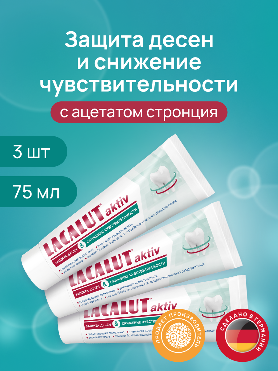 Зубная паста Lacalut Aktiv "Защита десен и снижение чувствительности" представляет собой эффективное средство для ухода за полостью рта. В упаковке содержится 3 тюбика по 75 мл каждый, что делает данный продукт экономичным и удобным в использовании.
