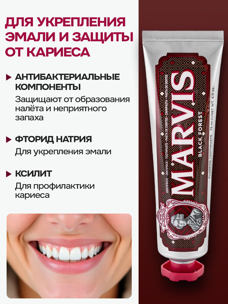 Зубная паста MARVIS BLACK FOREST Торт Черный лес, мятно-вишнёвая, 75 мл: сравнение цен, характеристики, фото, актуальное наличие и цены.