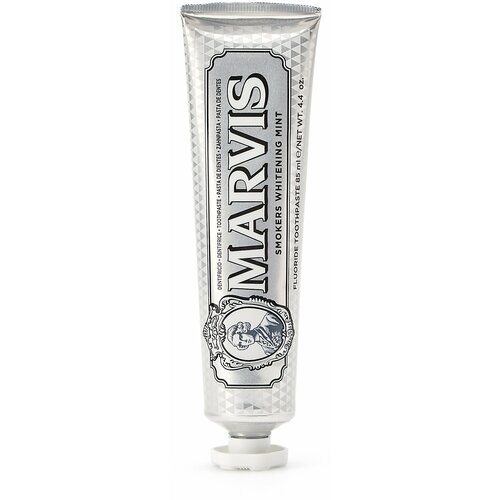 Кремообразная низкоабразивная зубная паста Марвис предназначена для тщательной очистки эмали от налёта, а также для мягкого отбеливания и устранения всех причин неприятного запаха изо рта. В составе пасты содержится фтор для активной профилактики появления кариеса. Фтор способствует реминерализации и укреплению зубной эмали, одновременно уничтожая вредные микробы, способствующие появлению и развитию кариеса. Абразивы — гидроксид алюминия и диоксид кремния — тщательно очищают образовавшийся налёт и полируют эмаль, не повреждая её. Компоненты пасты, входящие в состав, позволяют быстро и эффективно отбелить эмаль от пятен и потемнений, что делает её незаменимым средством для курильщиков и любителей кофе. Паста MARVIS рекомендуется для ежедневного использования и подходит при наличии чувствительности. Паста содержит фторид в концентрации 0.20%.