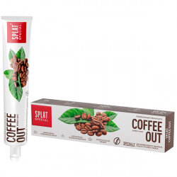 зубная паста SPLAT Special Кофе Аут 75мл обладает отбеливающим эффектом, эффективно удаляет налет от кофе и табака, освежает дыхание, имеет энергетический эффект, содержит натуральный кофеин, не содержит фтор, SLS/SLES, PEG, парабены, триклозан, хлоргексидин, сахарин, пероксиды; SPLAT SPECIAL COFFEE OUT эффективно отбеливает эмаль на 2 тона, 95.8% NATURAL, 100% ДЕЗОДОРИРУЮЩИЙ ЭФФЕКТ.