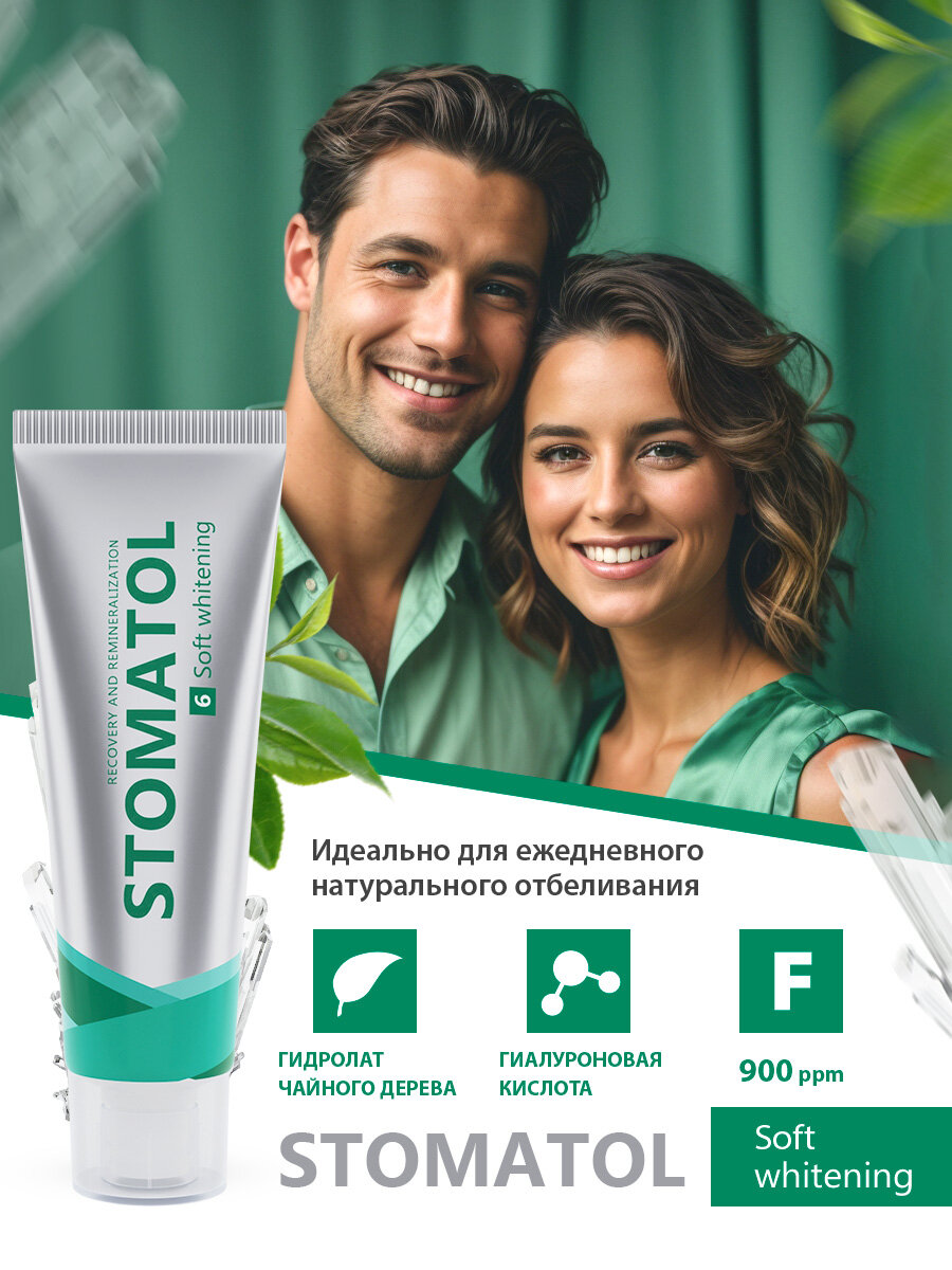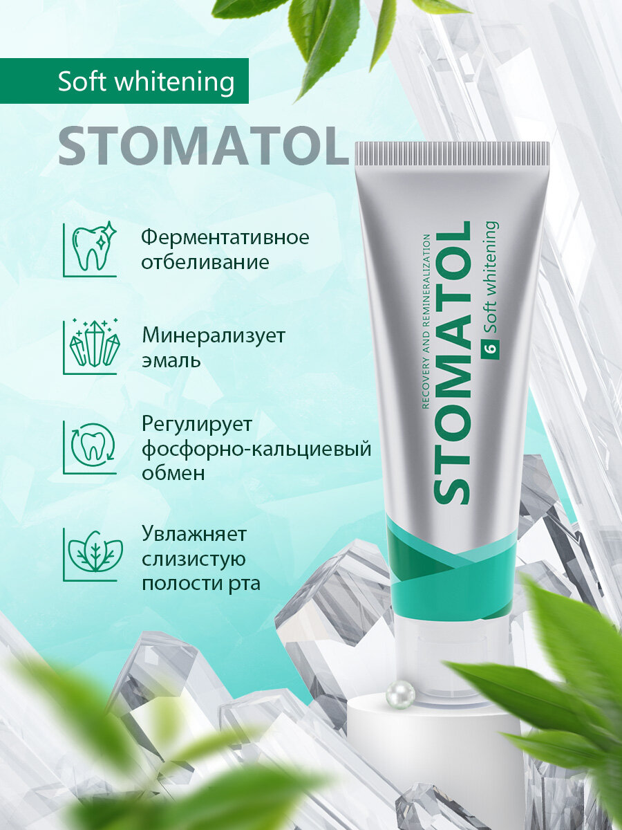 Зубная паста STOMATOL Soft Whitening для чувствительных зубов: натуральное и безопасное отбеливание.