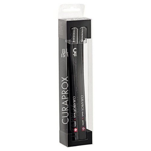 Набор зубных щеток BLACK IS WHITE. Содержит 2 ультрамягкие черные зубные щетки UltraSoft, в каждой 5100 ультрамягких щетинок CUREN из сверхтонкого полиэстрового волокна толщиной 0,10мм, что обеспечивает максимально комфортное и атравматичное удаление зубного налёта. Ряд белых щетинок в зубной щетке покрыт микрогранулами для дополнительной полировки эмали зубов.