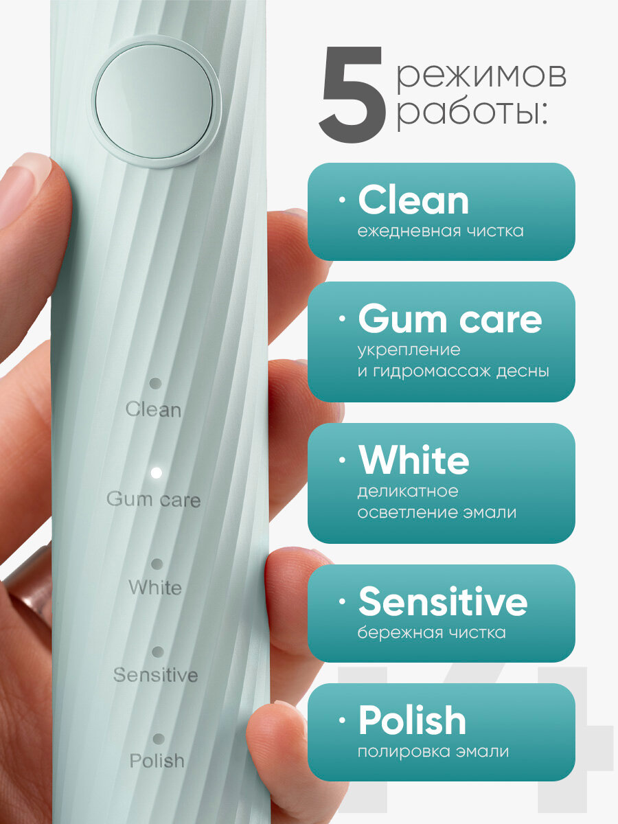 | Режимы работы | деликатная чистка, ежедневная чистка, массаж, отбеливание, полировка |