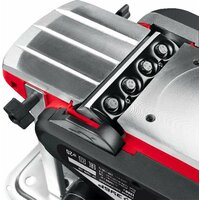 Мощный рубанок для строгания и выравнивания поверхностей, выборки четвертей и снятия фасок, который способен обрабатывать древесину любой твердости шириной 110 мм и глубиной до 3.5 мм. Максимальная функциональность: станина для установки в стационарное положение, электронная система защиты и управления двигателем, выборка четверти, изменяемое направление выброса стружки (влево и вправо), дополнительная рукоятка для удобного хвата, пазы для снятия фасок разной ширины, откидной башмак для защиты заготовки и оператора.