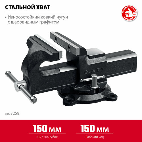 Тиски слесарные ЗУБР мастер изготовлены высококачественного чугуна, соответствуют самым высоким техническим требованиям. Обеспечивают длительную и качественную работу.