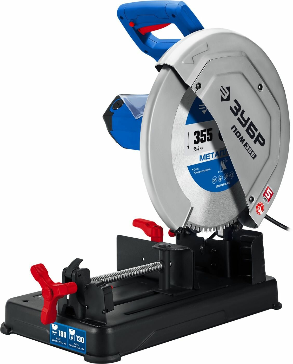 Отрезная пила ЗУБР ПОМ-355-Н, предназначена для прямой и косой отрезки заготовок из металла, при установке соответствующего диска. Пила имеет мощный и высокоресурсный двигатель, прочное штампованное основание и резиновые опоры для снижения вибраций. При работе обеспечивается высокая производительность, качество и точность реза. Конструкцией пилы предусмотрена простая замена угольных щёток.