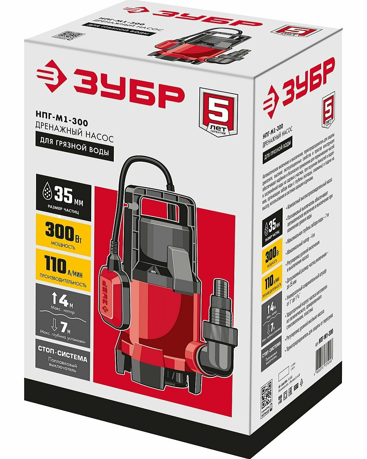 ЗУБР дренажный насос для грязной воды, 300 Вт, 110 л мин, напор 4 м (НПГ-М1-300)