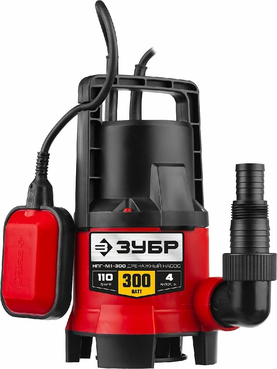 ЗУБР дренажный насос для грязной воды, 300 Вт, 110 л/мин, напор 4 м (НПГ-М1-300)