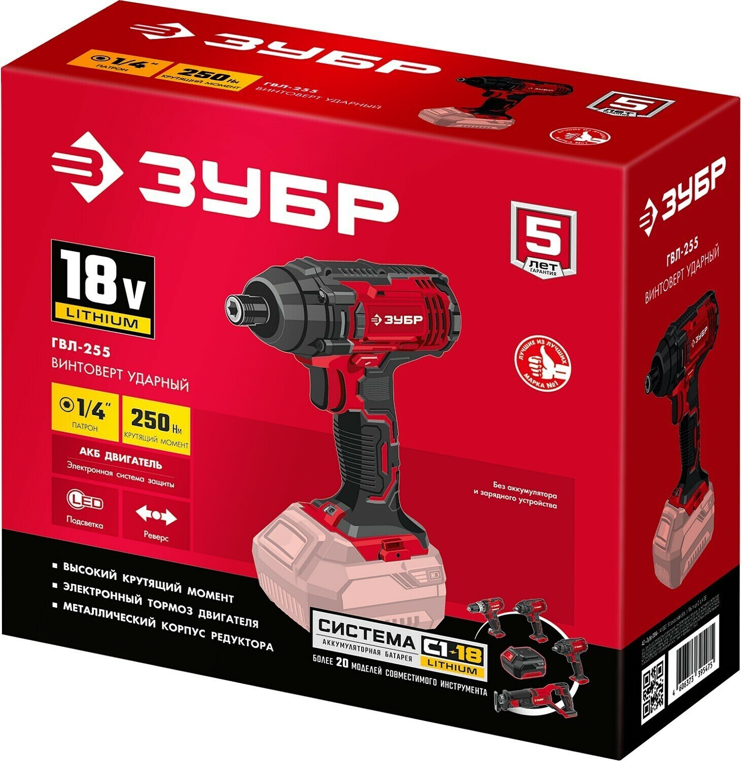 Купить ЗУБР С1-18, 18 В, 250 Н·м, без АКБ, винтоверт ударный (ГВЛ-255) с доставкой по всей России.