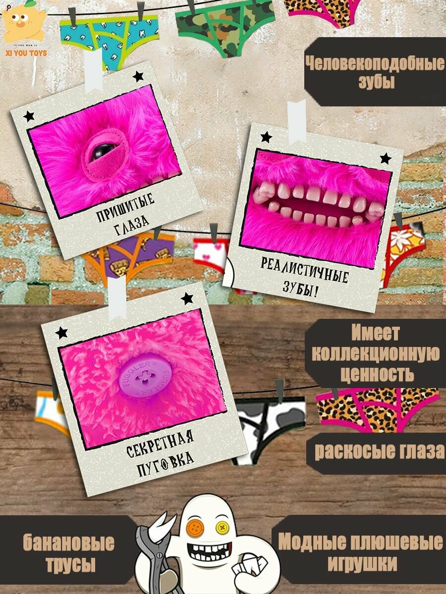 Купить Zuru Fuggler Funny Ugly Monster Budgie Mr Buttons / Зубы, Как У Человека, Удлиненные Глаза, Нижнее Белье-банан с доставкой по всей России.
