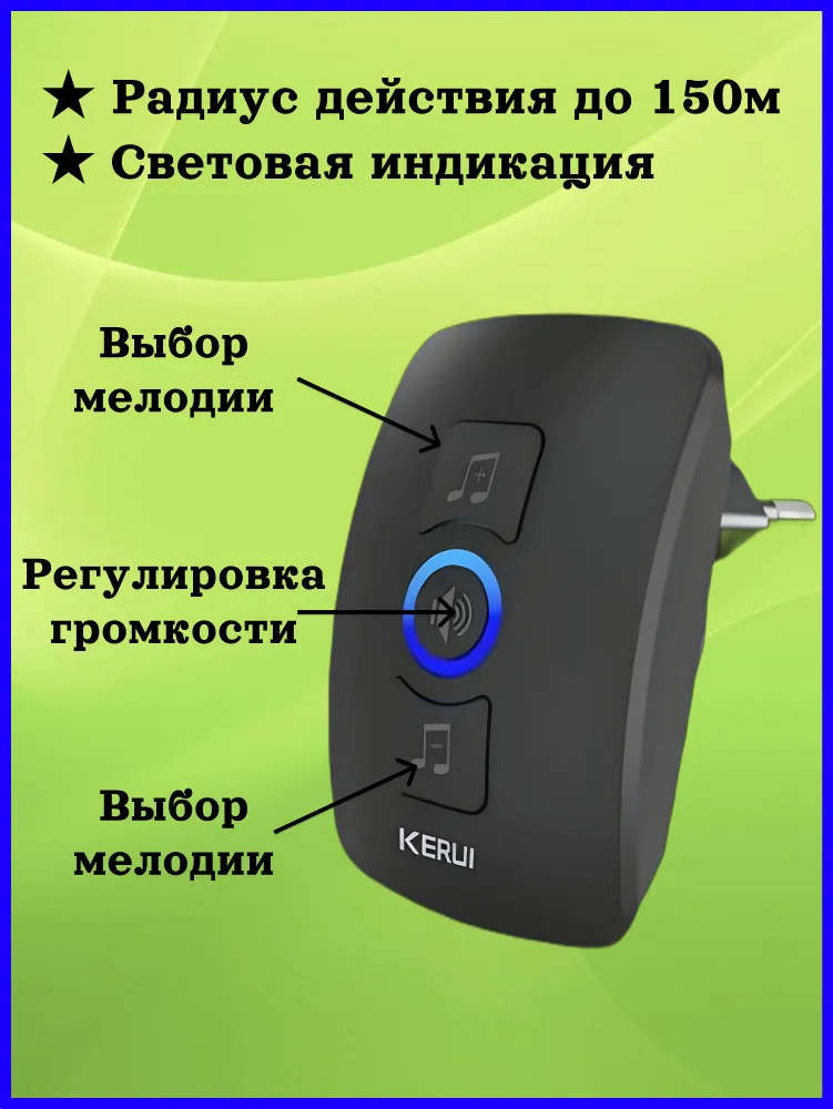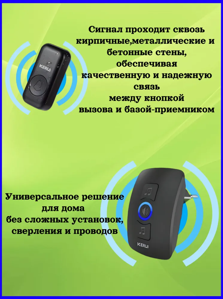 Беспроводной дверной звонок "KERUI" модели М 525 – это устройство для уведомления вас о посетителях, которое позволяет вам не пропустить ни одного гостя, посетившего вашу квартиру или дом. В отличие от традиционных проводных звонков, беспроводной дверной звонок не требует сложной установки и специальных настроек. Он может быть установлен практически в любом месте, идеально подходя для квартир, домов и бизнес-центров.