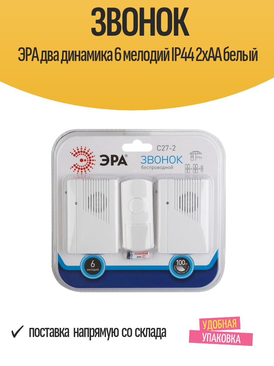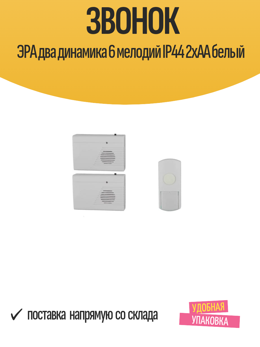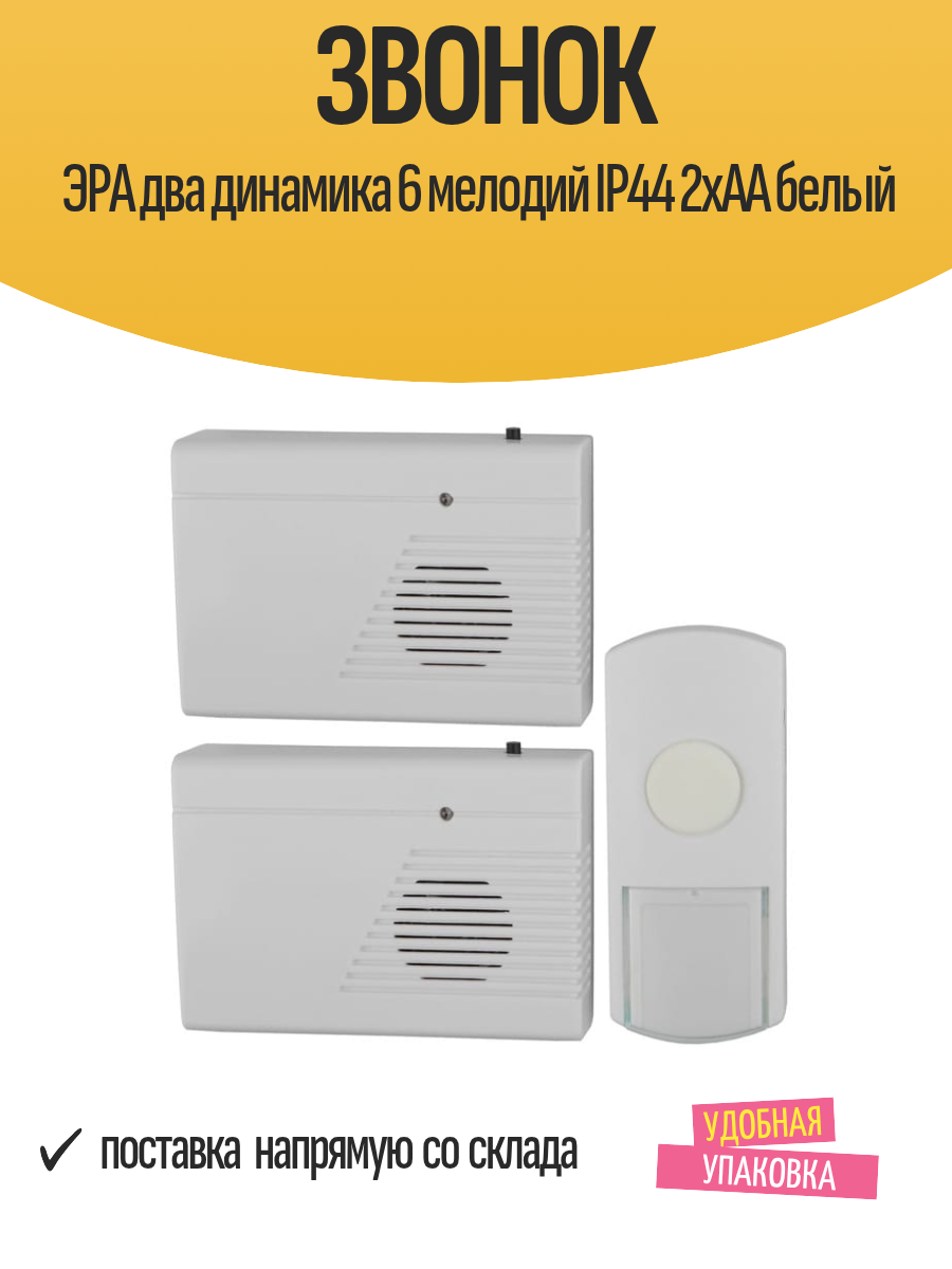 Купить Звонок дверной ЭРА два динамика, 6 мелодий, IP44, 2хАА, белый с доставкой по всей России. Звонок дверной ЭРА два динамика, 6 мелодий, IP44, 2хАА, белый: сравнение цен, характеристики, фото, актуальное наличие и цены.