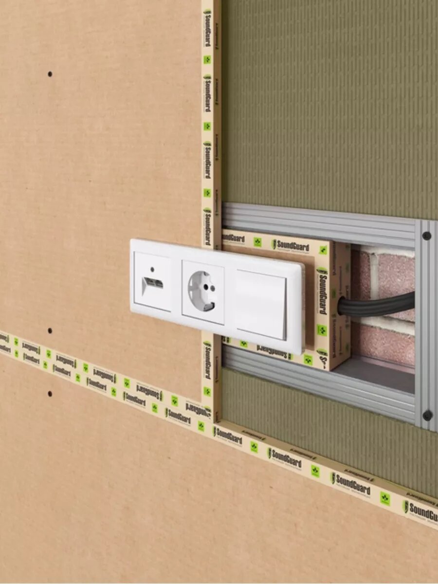 Звукоизоляционный короб Саунд Гард П Бокс 1 предназначен для предотвращения проникновения шума через гнезда электророзеток и выключателей.