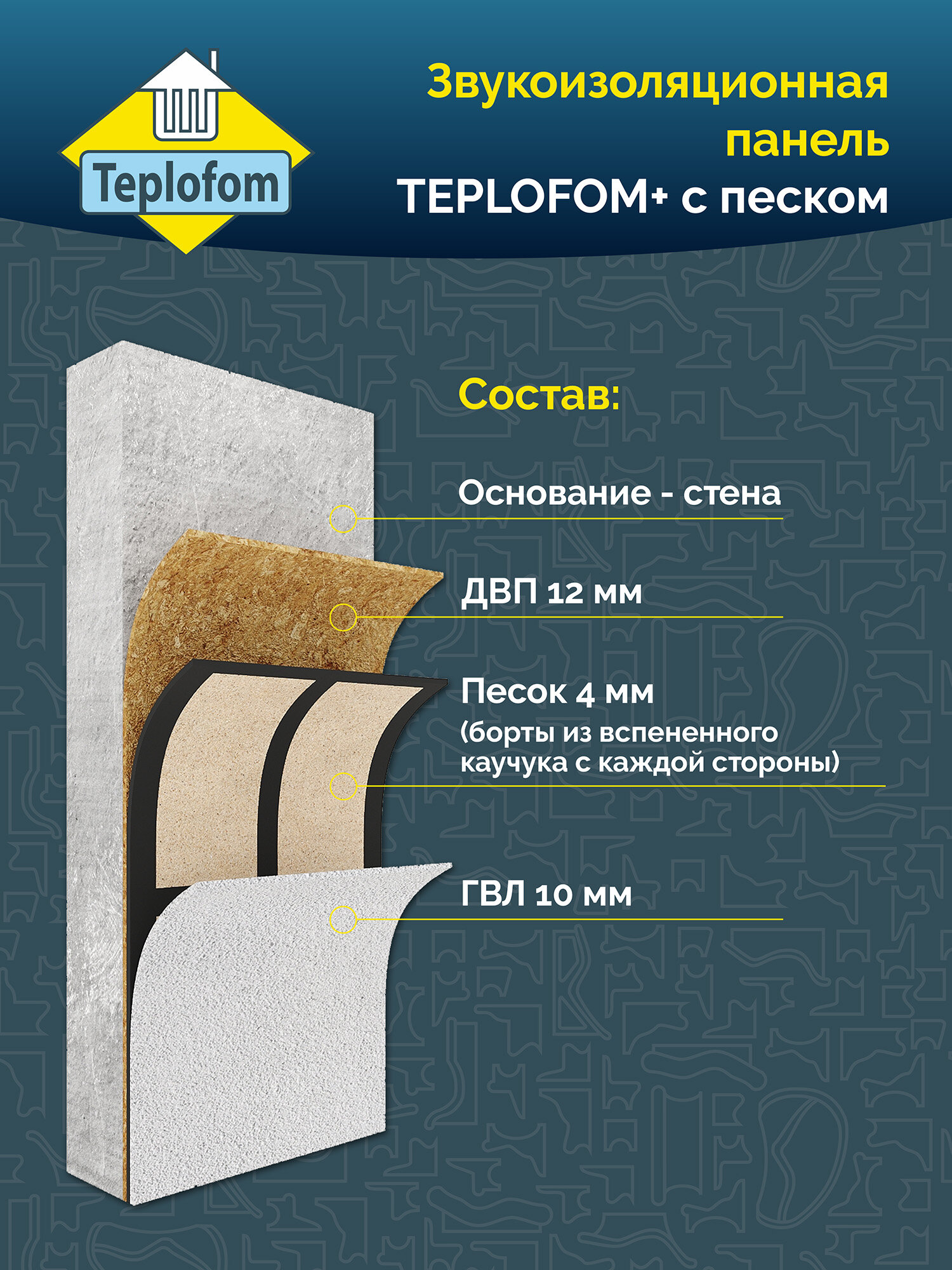 Купить Звукоизоляция для стен, пола, потолка TEPLOFOM+ с песком 1200х600х26 мм с доставкой по всей России. Звукоизоляция для стен, пола, потолка TEPLOFOM+ с песком 1200х600х26 мм: сравнение цен, характеристики, фото, актуальное наличие и цены.