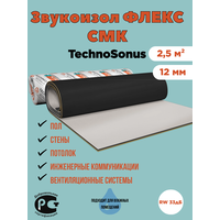 Звукоизол Флекс СМК самоклеящийся 2500х1000х12мм (2,5 м²) Техносонус – звукоизоляционный материал на основе эластомерного каучука и минерально-полимерной мембраны повышенной плотности. Звукопоглощающий материал сочетает в себе такие свойства, как звукоизоляция, шумоизоляция, вибропоглощение и теплоизоляция. Данная комбинация позволяет добиться максимального эффекта по снижению шума при минимальной толщине, что важно при звукоизоляции инженерных систем, в том числе вентиляционных коммуникаций. Звукоизол Флекс СМК techno sonus - хорошо режется, не создает трудностей в работе, безопасен для здоровья. На обратную сторону мембраны нанесен клеящий слой, который позволяет надежно крепить материал к большинству поверхностей. Звукоизол Флекс СМК TechnoSonus эффективно решает проблему звукоизоляции канализационных и водосточных трубопроводов, труб водоснабжения, может применяться для стен, облицовки вентиляционных систем, воздуховодов, систем кондиционирования, отделки поверхностей промышленного оборудования, а также звукоизоляции полов, звукоизоляция для авто, потолков и межкомнатных конструкций, шумоизоляция автомобиля для пола, шумоизоляция отливов, тепло шумоизоляция автомобиля. Сочетает звукоизоляционные и теплоизоляционные свойства, а также вибродемпфирование. Эластичность материала позволяет использовать его в труднодоступных местах и в разных плоскостях, включая звукоизоляцию вентиляционных и иных коммуникаций. Простой монтаж, удобная нарезка на фрагменты требуемого размера. Не поддерживает горения, пламя не распространяется по поверхности. Не выделяет пыль, волокна и вредные вещества, поэтому может применяться на объектах любого назначения. Не содержит свинца, галогенизированных и фторированных углеводородов. Влагостойкий, подходит для помещений с повышенной влажностью. Применение: Жилые здания. Промышленное оборудование. Вентиляционные коммуникации. Строительная промышленность. Применение в качестве демпфирующего слоя при устройстве плавающих стяжек. Автомобили.