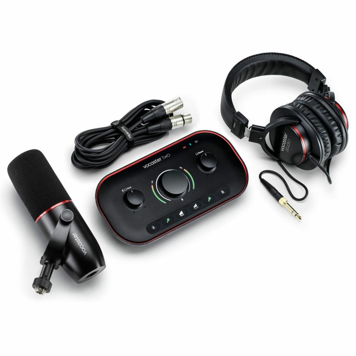 Звуковая карта Focusrite Vocaster Two Studio Podcast Set, комплект с микрофоном и наушниками: сравнение цен, характеристики, фото, актуальное наличие и цены.