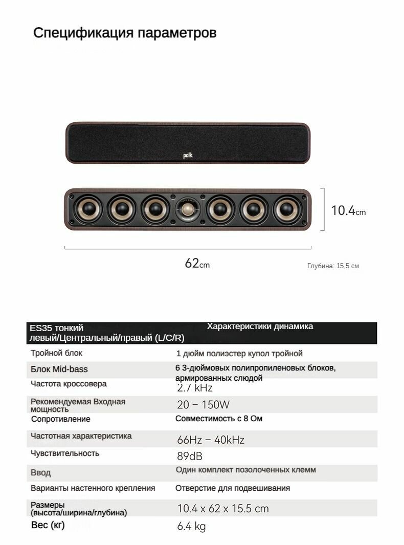 Купить Звуковая панель домашнего кинотеатра Polk Audio ES35 HiFi center с доставкой по всей России. Звуковая панель домашнего кинотеатра Polk Audio ES35 HiFi center: сравнение цен, характеристики, фото, актуальное наличие и цены.