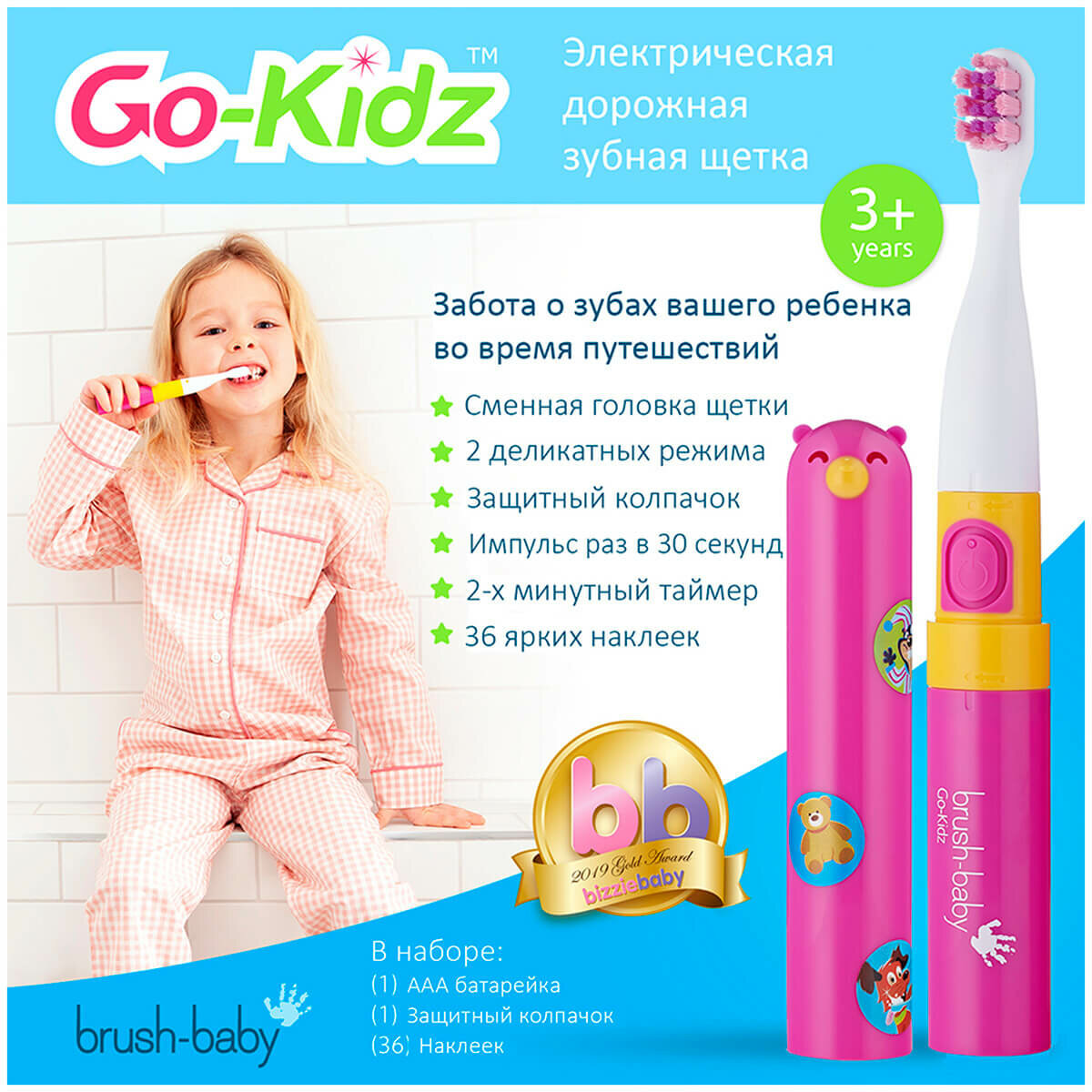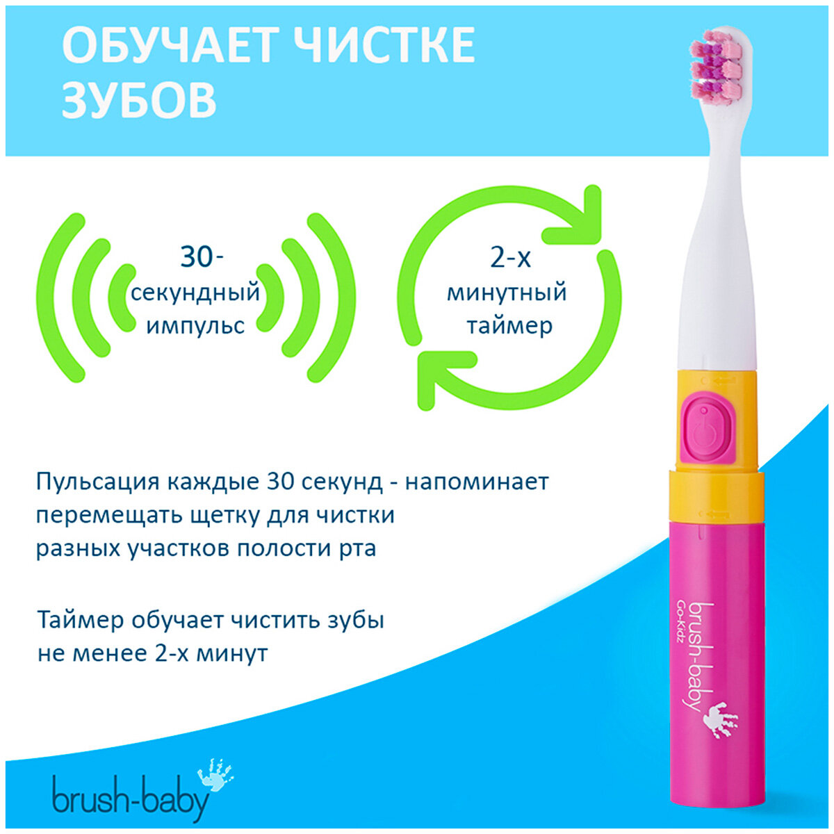 Зубная щётка электрическая Brush Baby Go-Kidz Pink, от 3 лет, розовая: сравнение цен, характеристики, фото, актуальное наличие и цены.