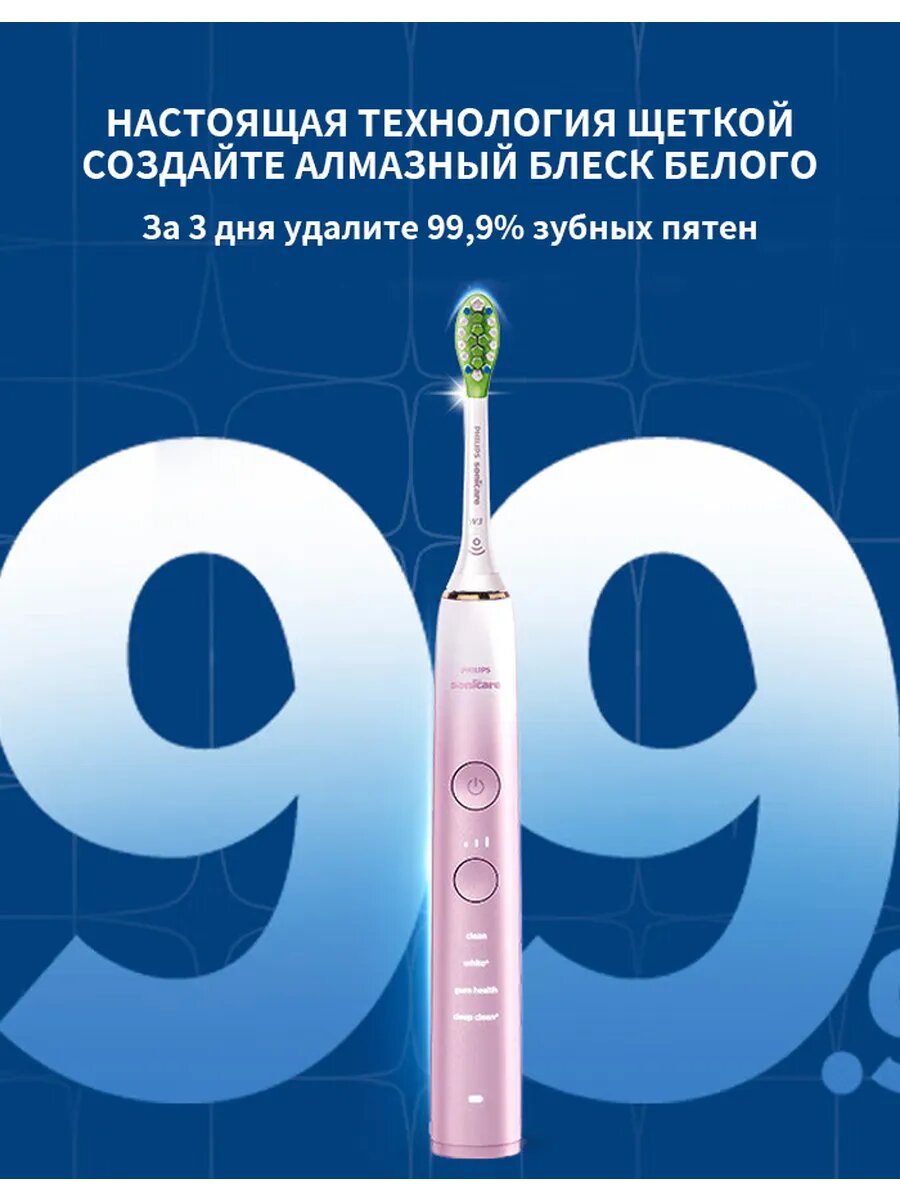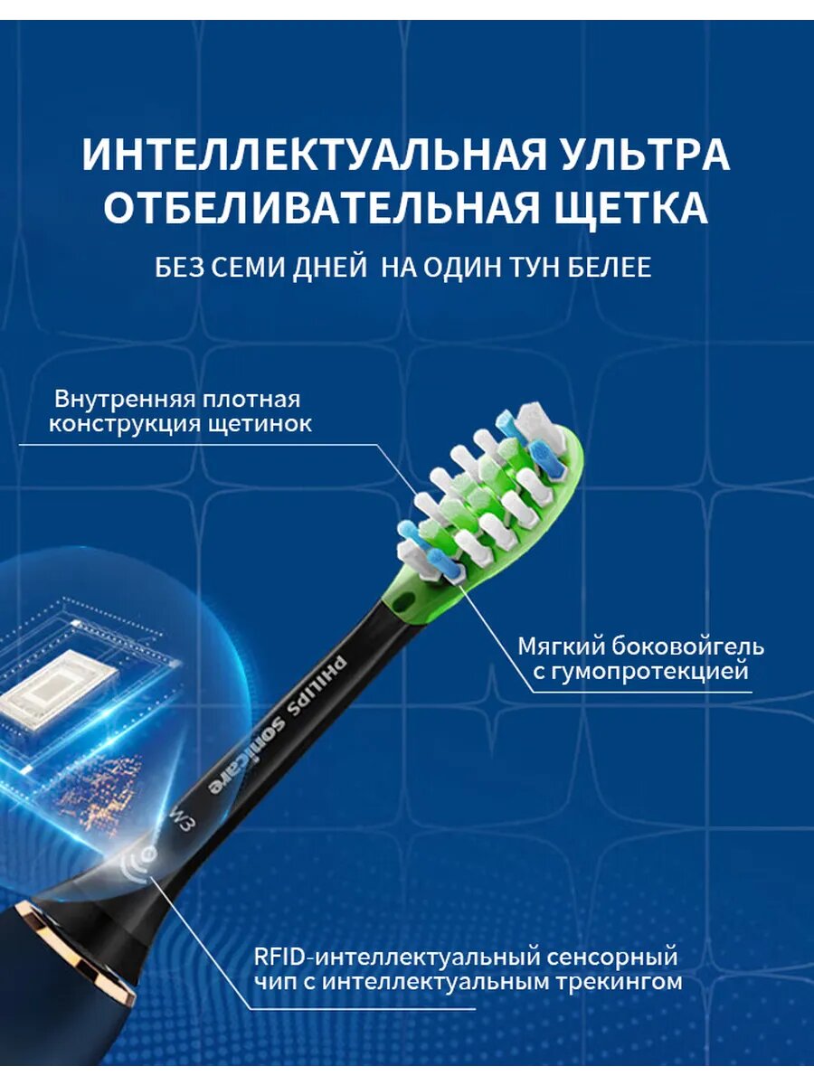 Интеллектуальные чистящие насадки обеспечивают оптимальный выбор режима и уровня интенсивности для максимально эффективной чистки. К примеру, вы используете чистящую насадку W3 Premium White. Технология DiamondClean 9000 BrushSync автоматически синхронизирует чистящую насадку с режимом White+ (Осветление) для эффективного отбеливания ваших зубов.