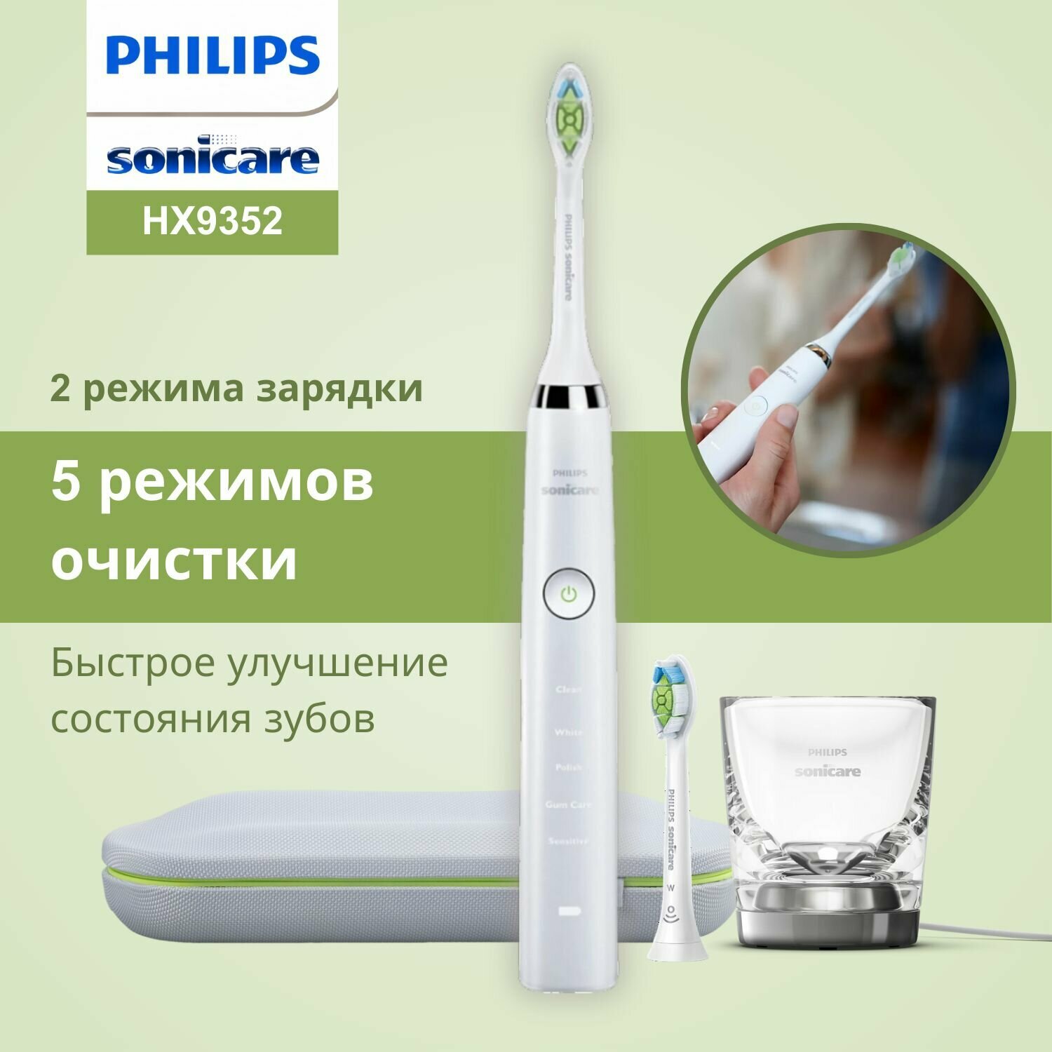 Купить Звуковая зубная щетка Philips Sonicare DiamondClean HX9352, с дорожным футляром, белая с доставкой по всей России.