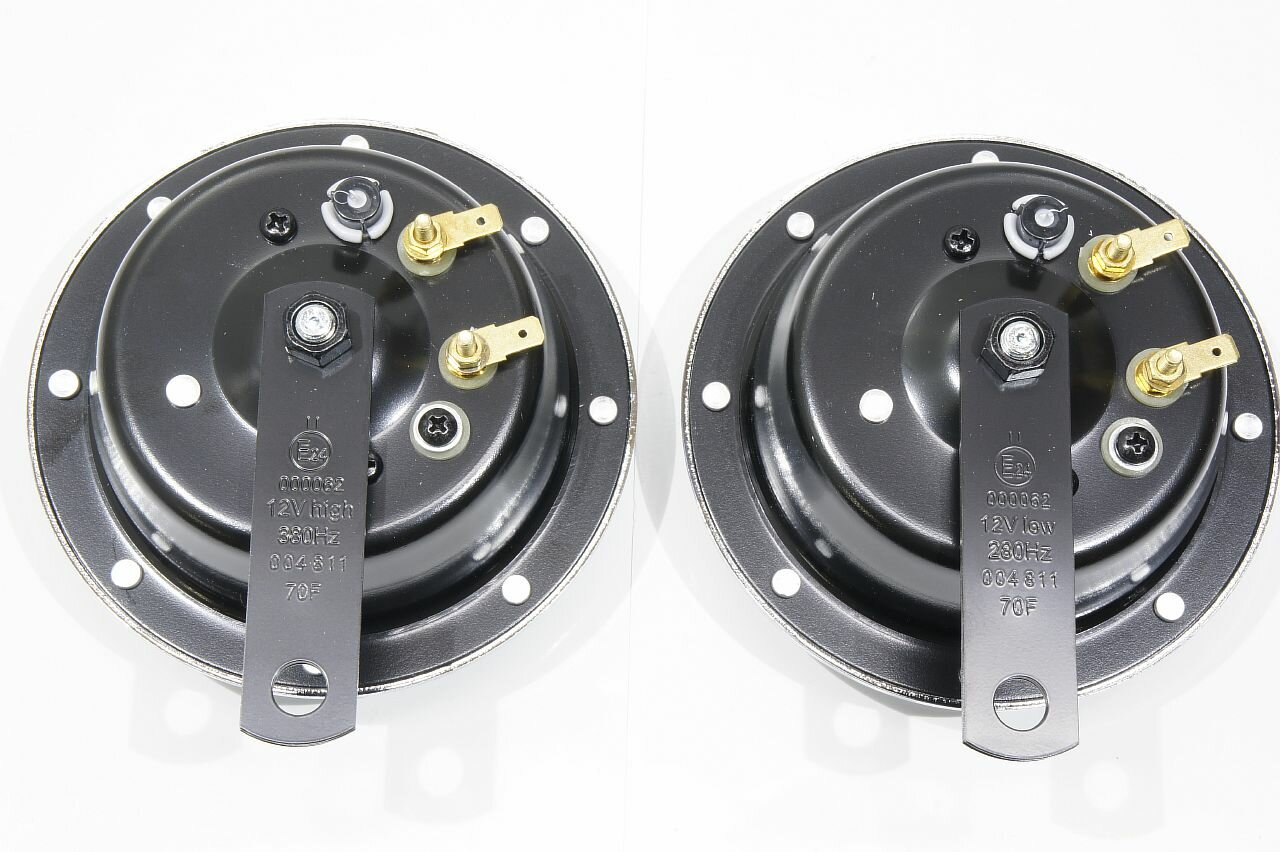 В упаковке поставляется два звуковых сигнала, что позволяет установить их на обе стороны автомобиля для обеспечения двустороннего оповещения.