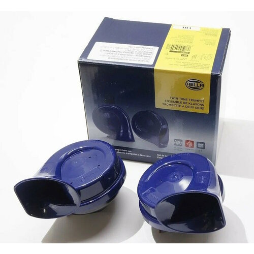 Сигналы имеют синий цвет. Звуковые сигналы Hella 012010801 работают от напряжения 12V. Потребляемая мощность составляет 2*72W. Материал изготовления – пластик.