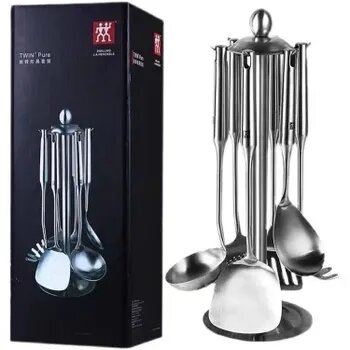 ZWILLING Набор кухонных инструментов для приготовления пищи,Удовлетворите свои кулинарные потребности,Материал - нержавеющая сталь 304, долговечная,Поворотная стойка, на которой можно разместить все инструменты, обеспечивает удобный доступ к ним и занимает мало места. Отлично подойдет для собственной кухни или в качестве подарка!